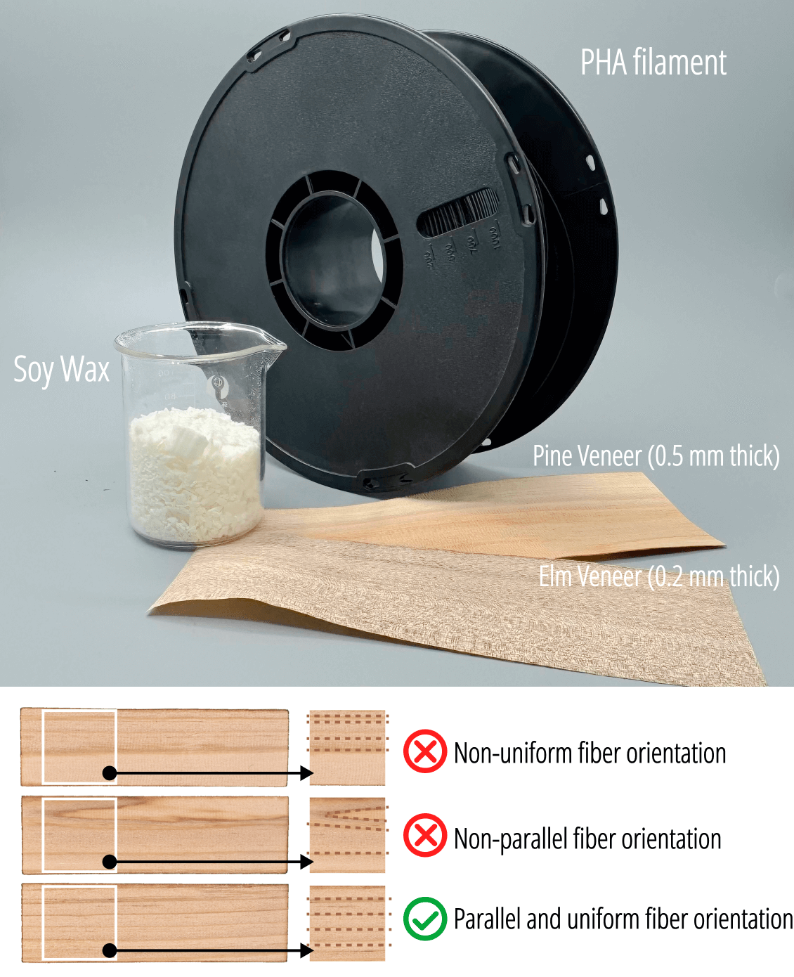 - For thermal-driven actuation, use 0.2 mm elm veneer.